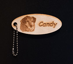 Keychain engraved with name on 1/8" clear acrylic. Includes 4" military style ball chain.